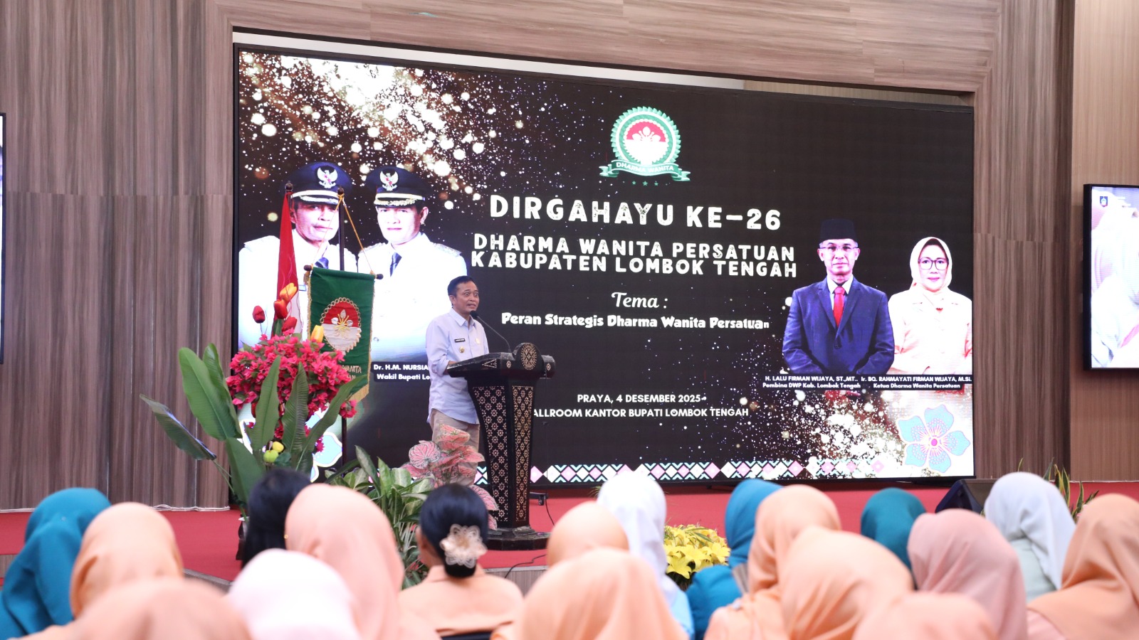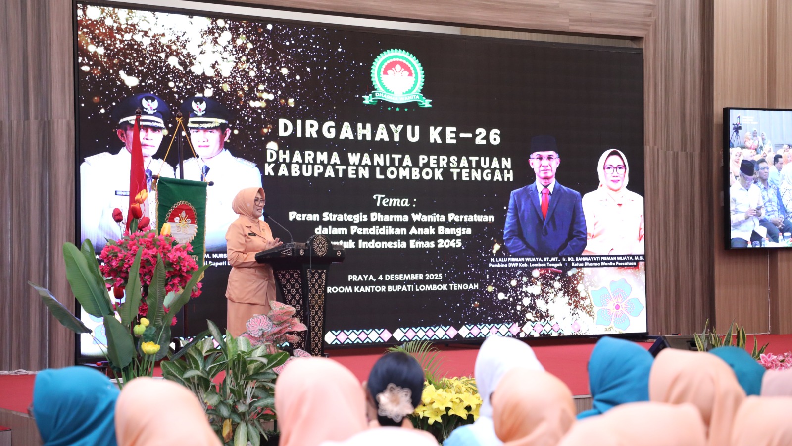 Lombok Tengah — Dharma Wanita Persatuan (DWP) Kabupaten Lombok Tengah memperingati Hari Ulang Tahun (HUT) ke-26 dengan mengangkat tema “Peran Strategis DWP dalam Pendidikan Anak Bangsa untuk Indonesia Emas 2045”. Kegiatan digelar pada Kamis (4/12/2025) di Ballroom Gedung B Lantai 5 Pusat Pemerintahan Kabupaten Lombok Tengah.