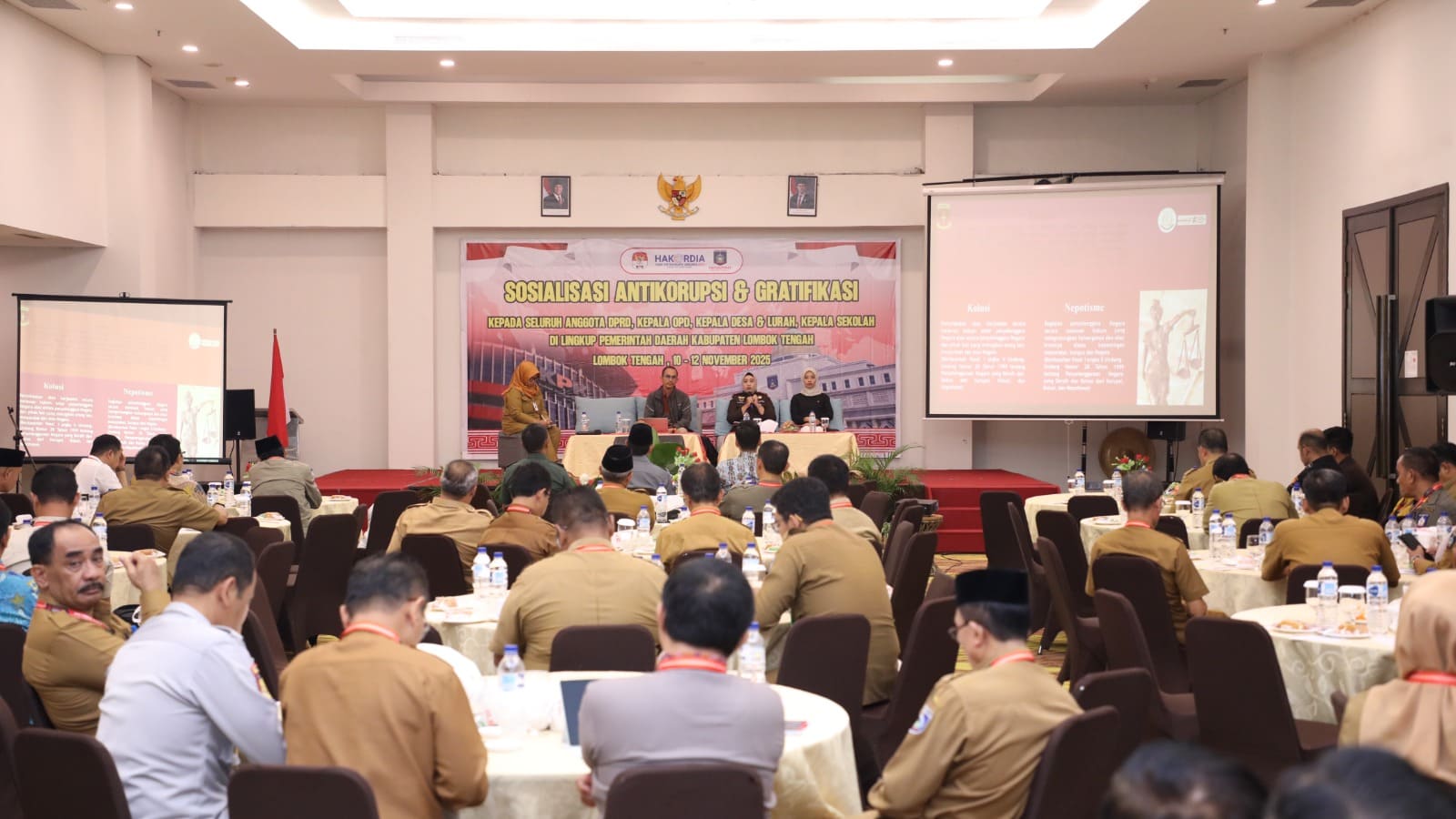Lombok Tengah – Pemerintah Kabupaten Lombok Tengah menggelar Sosialisasi Anti Korupsi dan Gratifikasi yang diikuti oleh seluruh jajaran pejabat daerah, mulai dari kepala OPD, anggota DPRD, kepala desa dan lurah, hingga kepala sekolah di lingkup Kabupaten Lombok Tengah. Kegiatan ini merupakan rangkaian peringatan Hari Antikorupsi Sedunia (Hakordia) 2025 yang mengusung tema “Satukan Aksi, Berantas Korupsi”.