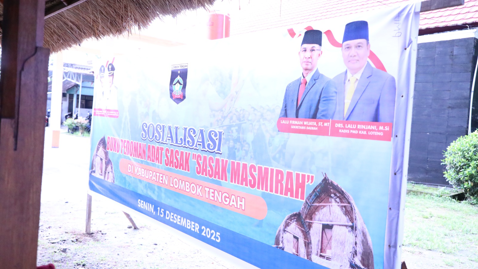 Pemerintah Kabupaten Lombok Tengah melalui Dinas Pemberdayaan Masyarakat dan Desa (PMD) menggelar kegiatan sosialisasi Buku Sasak Masmirah sebagai buku pedoman adat istiadat Kabupaten Lombok Tengah. Kegiatan ini melibatkan unsur pemerintah daerah, Majelis Kerame Adat Sasak, tokoh adat, serta lembaga adat desa se-Kabupaten Lombok Tengah, dan dilaksanakan pada Senin, 15 Desember 2025, bertempat di Kantor Dinas PMD Kabupaten Lombok Tengah.