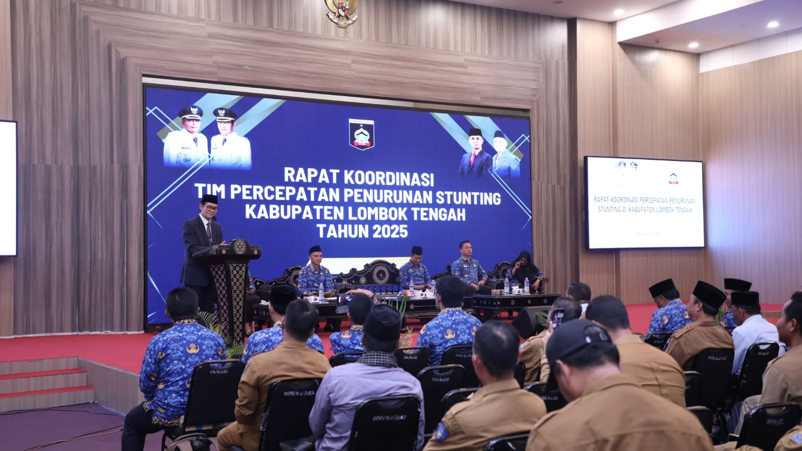 Lombok Tengah — Pemerintah Kabupaten Lombok Tengah kembali menegaskan komitmennya dalam menurunkan angka stunting melalui Rapat Koordinasi Tim Percepatan Penurunan Stunting (TPPS) yang digelar pada Senin, 17 November 2025, di Ballroom Kantor Bupati Lombok Tengah. Kegiatan ini dihadiri oleh Wakil Bupati Lombok Tengah Dr. H.M. Nursiah, S.Sos., M.Si., PLT Kepala BP3AP2KB Kusriadi, Kepala Bidang AP2M Bapperida Sri Mulyana Widiastuti, Kepala Bidang Kesehatan Masyarakat Dinas Kesehatan Dr. H. Nasrullah, serta sejumlah anggota TPPS dari berbagai perangkat daerah.